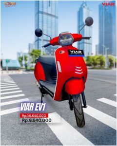 Viar EV1 adalah motor listrik dengan kombinasi desain elegan, performa cukup untuk harian, hemat biaya, serta ramah lingkungan. Dengan kecepatan 55 km/jam, jarak tempuh 80 km, suspensi nyaman, dan sistem keamanan lengkap, EV1 bukan hanya kendaraan, tapi juga gaya hidup modern yang lebih cerdas. Apalagi sekarang ada promo diskon Rp7.000.000, membuat Viar EV1 semakin terjangkau dan layak dimiliki.