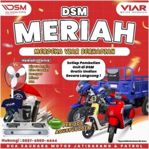 Bulan Agustus ini, dalam rangka merayakan Hari Kemerdekaan Indonesia, Dua Saudara Motor kembali menghadirkan program spesial untuk para pelanggan setia, bertajuk “MERDEKA VIAR BERHADIAH”. Program ini dirancang untuk memberikan apresiasi kepada konsumen yang telah mempercayakan kebutuhan kendaraan mereka kepada Viar, khususnya melalui dealer Dua Saudara Motor.